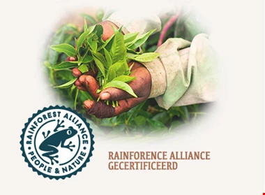 Alle thee van Pickwick TMS is Rainforest Alliance gecertificeerd. Dit keurmerk staat garant voor de bescherming van biodiversiteit, het behoud van natuurlijke hulpbronnen en het verbeteren van de leefomstandigheden van de boeren.