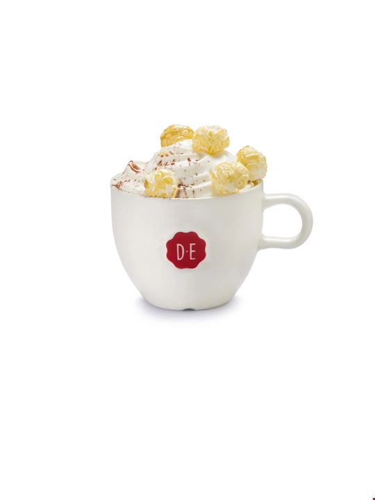 Garneer met zoete popcorn en een snufje cacaopoeder