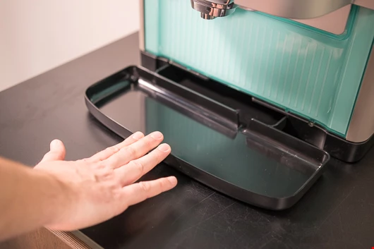 Schuif de lekbak terug in jouw koffiemachine. Zorg dat je deze voldoende aandrukt.