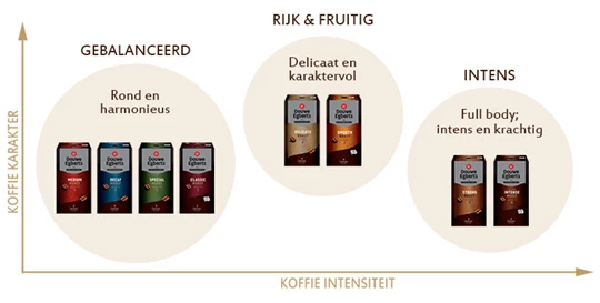 Blends: Classic Roast, Medium Roast, Special Roast en Decaf Roast.